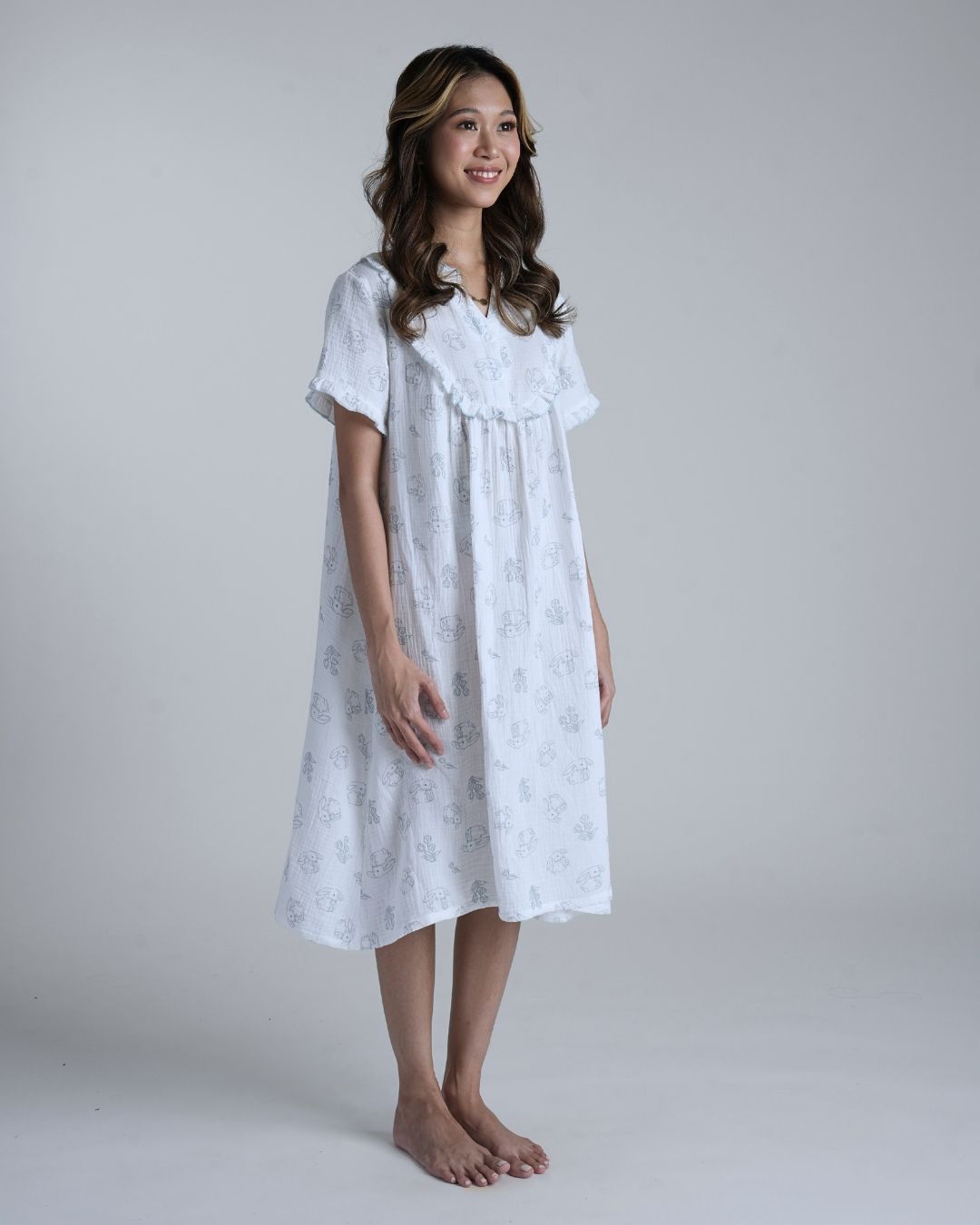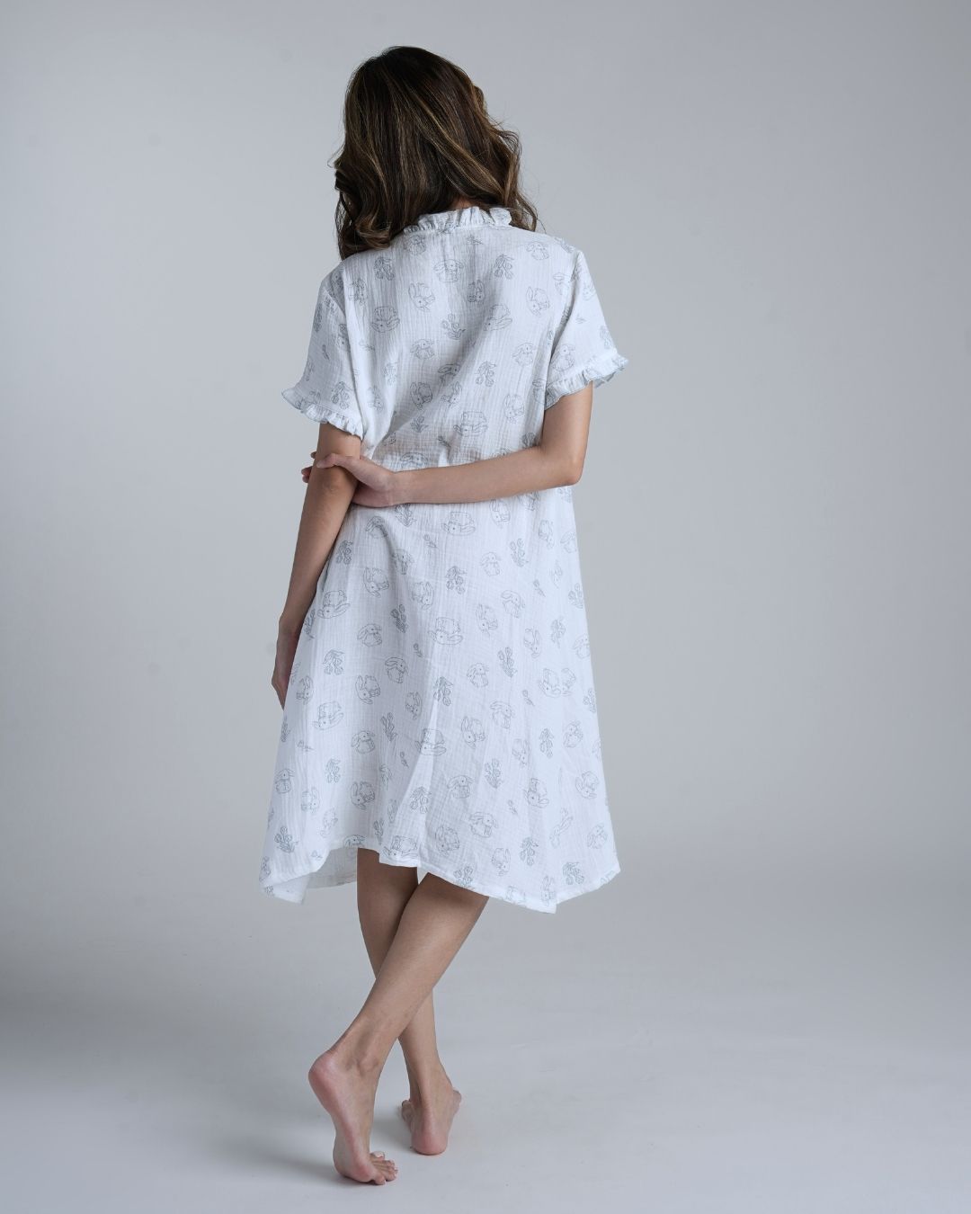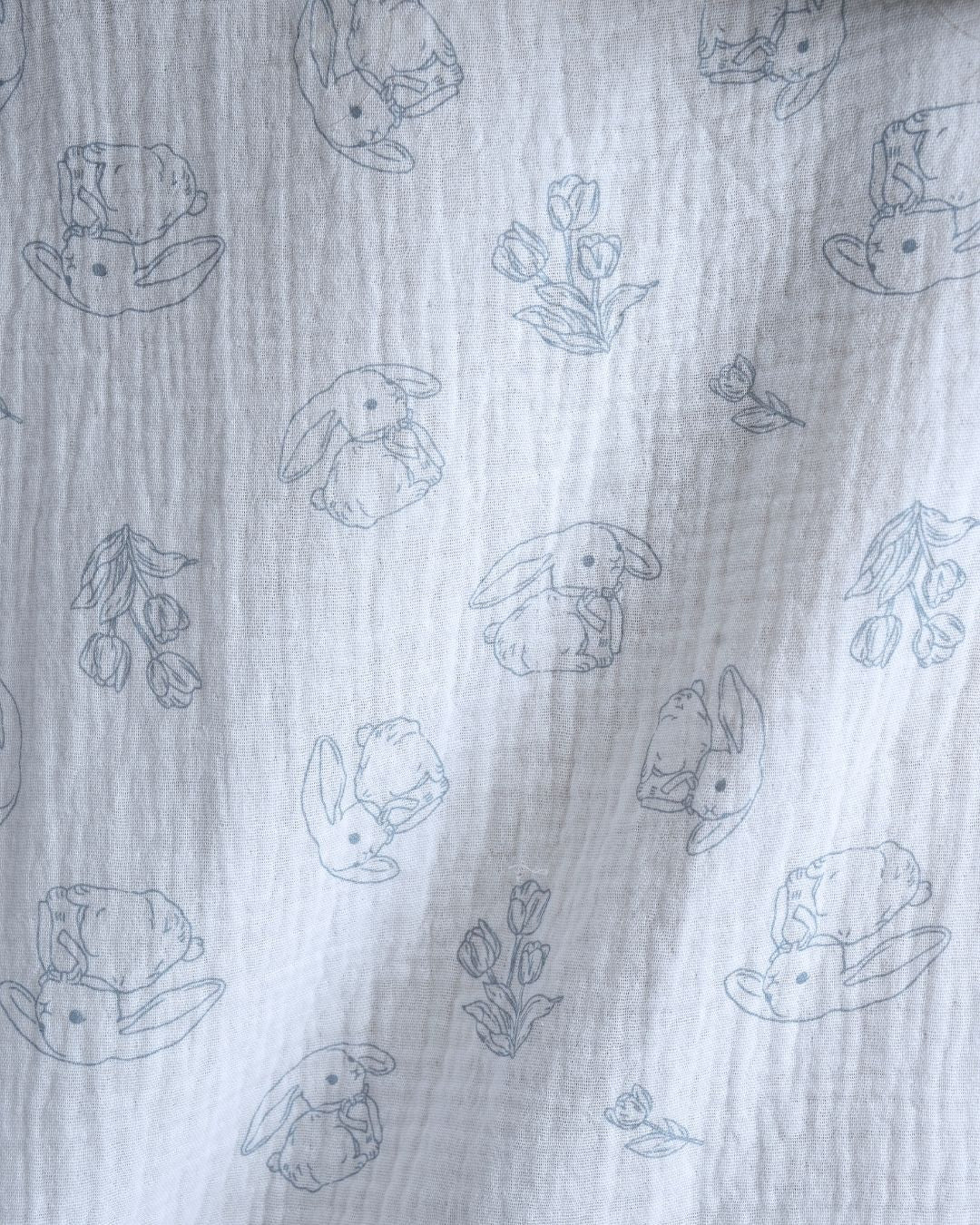 Playful yet peaceful, Bunny Field feels like childhood afternoons spent outdoors. The muslin cotton fabric is light and breathable, giving you the ease of comfort that moves with you through every slow, gentle moment.