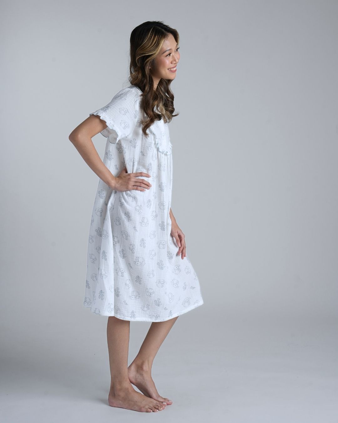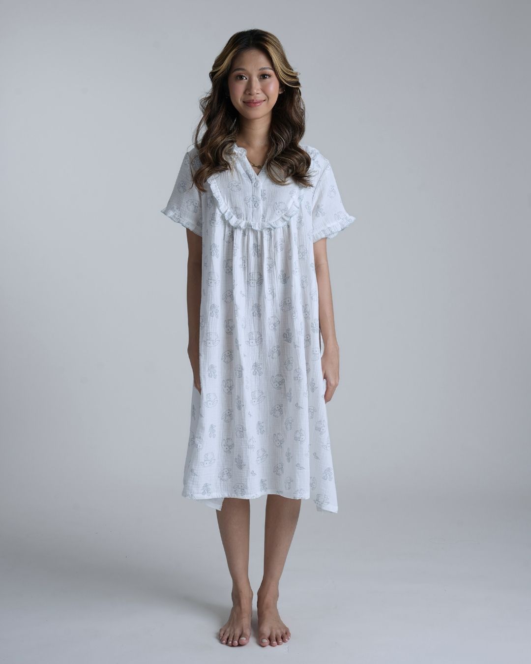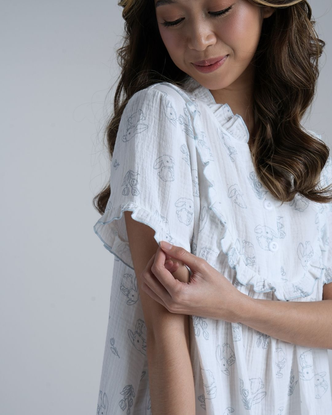 Playful yet peaceful, Bunny Field feels like childhood afternoons spent outdoors. The muslin cotton fabric is light and breathable, giving you the ease of comfort that moves with you through every slow, gentle moment.