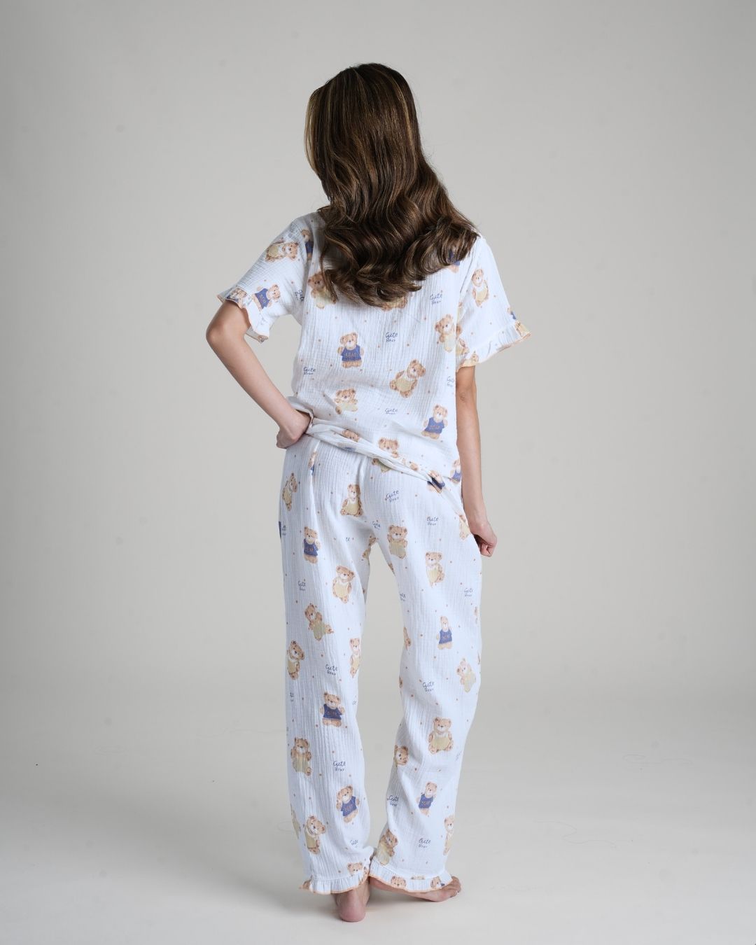 Cuddle Bear carries the comfort of childhood in every thread. The airy muslin fabric feels light and familiar, wrapping you in warmth that lasts. It is cozy, soft, and made to bring comfort to your most peaceful moments at home.